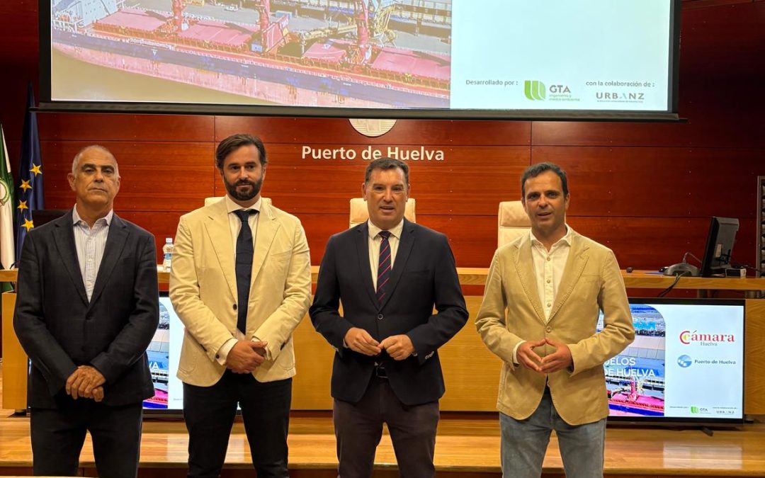 Así lo han dado a conocer hoy el presidente de la Cámara de Comercio de Huelva, Daniel Toscano, y el presidente del Puerto de Huelva, Alberto Santana, acompañados por el director general de la Cámara de Comercio de Huelva, Arsenio Martínez, y el CEO – director general de GTA,
