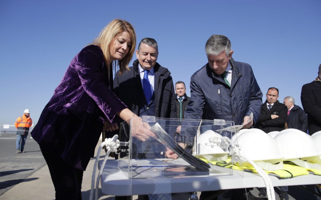 Huelva, 27 de enero de 2023.- El consejero de la Presidencia, Interior, Diálogo Social y Simplificación Administrativa de la Junta de Andalucía, Antonio Sanz, ha presidido hoy, acompañado por la presidenta del Puerto de Huelva, Pilar Miranda, el acto de colocación de la primera piedra de la nueva doble rampa ro-ro (para tráfico rodado) en el Muelle Sur del Puerto de Huelva. La inversión acometida por el Puerto de Huelva en esta infraestructura supera los 19,4 millones de euros.