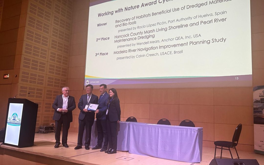 Huelva, 2 de mayo de 2024.-El Puerto de Huelva ha sido galardonado con un premio internacional concedido por la Asociación Mundial para las Infraestructuras de la Navegación (PIANC, The World Association for Waterborne Transport Infrastructure), por el modelo de gestión de sus dragados, que además de mantener el calado necesario para garantizar la navegación segura, aporta beneficios medioambientales al entorno.