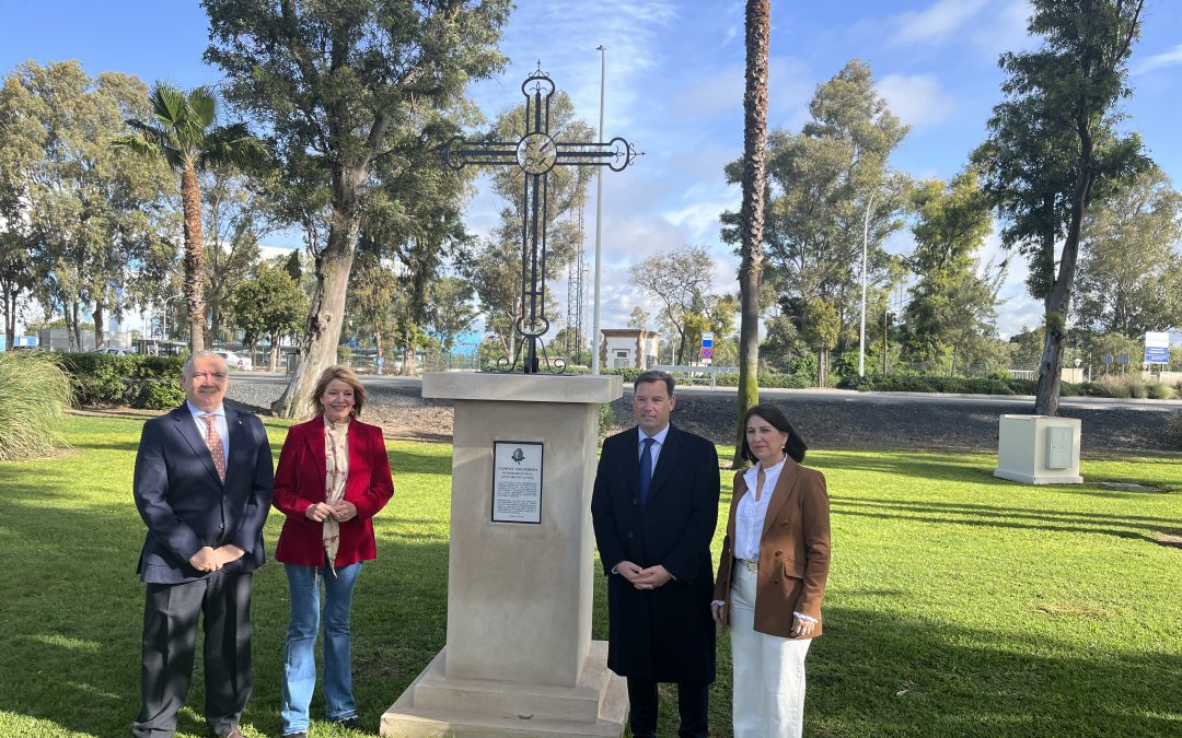 Huelva, 2 de abril de 2025.- El Puerto de Huelva acoge desde hoy en el entorno del Monumento a Colón, situado en la Punta del Sebo de la ciudad, la Cruz, que marca el inicio del camino de peregrinación al Santuario de Nuestra Señora de la Cinta, que recrea los pasos que realizó el almirante Cristóbal Colón a su regreso a España tras la Gesta Colombina y en agradecimiento a la Virgen de la Cinta tras superar una tempestad durante la travesía.