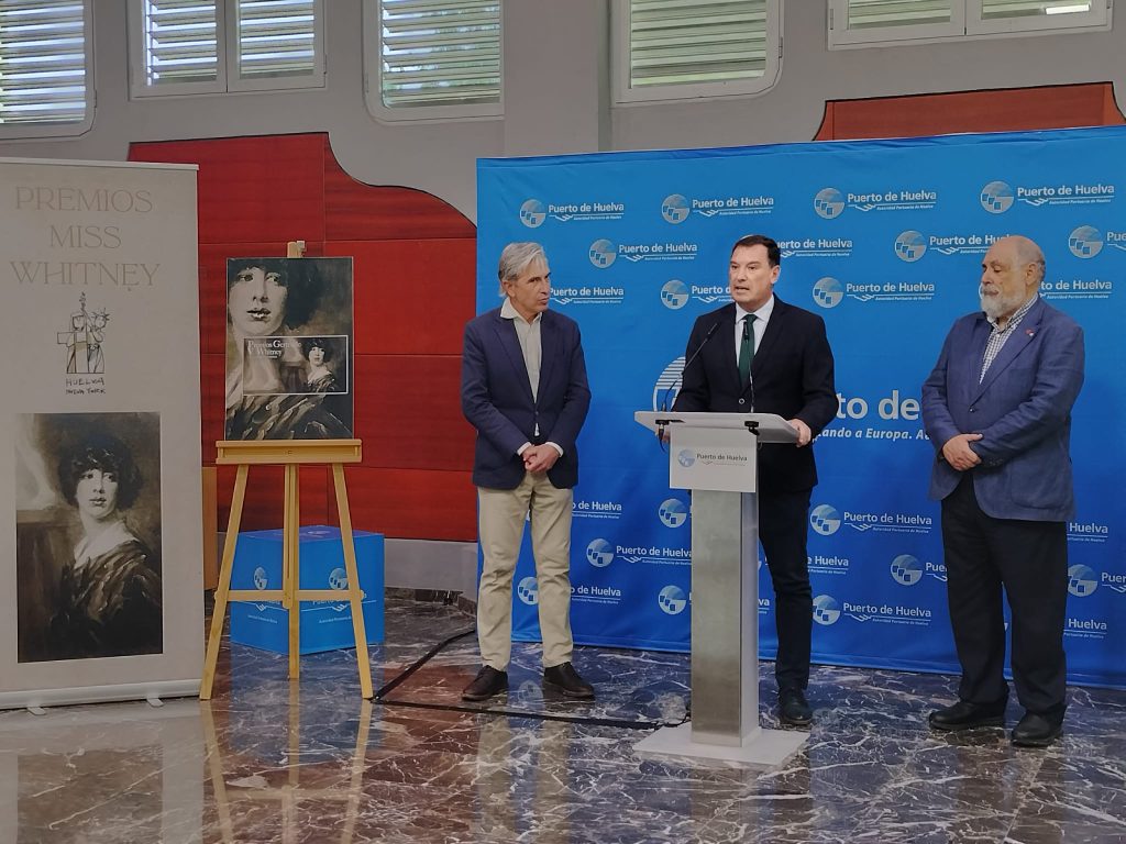 Huelva, 27 de octubre de 2025.- El presidente del Puerto de Huelva, Alberto Santana, junto con el presidente de la Asociación Huelva-Nueva York, Juan Antonio Márquez, acompañados por el tesorero de la asociación, Manuel Ángel Bracho, han presentado hoy los II Premios ‘Gertrude V.  Whitney’ a la Mujer Onubense, que reconocen a las mujeres de Huelva y su provincia que hayan destacado en algunos de los siete ámbitos de la convocatoria, por su esfuerzo y entrega y, principalmente, por sus valores y cualidades personales.