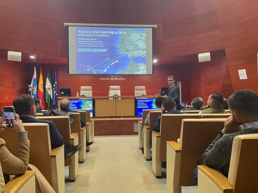 Huelva, 4 de diciembre de 2025.-El Puerto de Huelva ha celebrado un encuentro esta semana con empresas de la comunidad portuaria, cargadores, transportistas, compañías de logística y servicios marítimos, para dar a conocer la nueva salida semanal, los martes, de la línea regular marítima en contenedor Huelva – Islas Canarias de la naviera Alisios Shipping Lines, además de presentar su capacidad de volumen de carga, tiempo de tránsito y puertos de destinos.