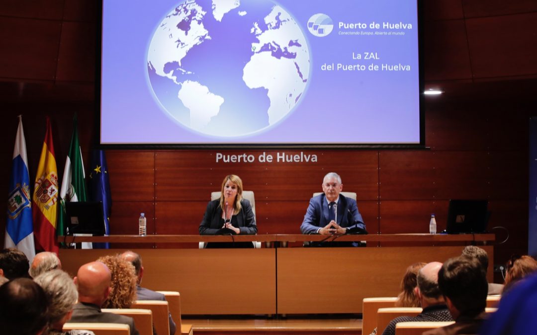 La presidenta del Puerto de Huelva, Pilar Miranda, ha presentado hoy junto con el director de la entidad, Ignacio Álvarez-Ossorio, y el jefe de Departamento de Dominio Público Portuario, César Vera, el Concurso Público para el otorgamiento de concesiones en la Zona de Actividades Logísticas, ZAL del Puerto de Huelva, ante empresarios e inversores.