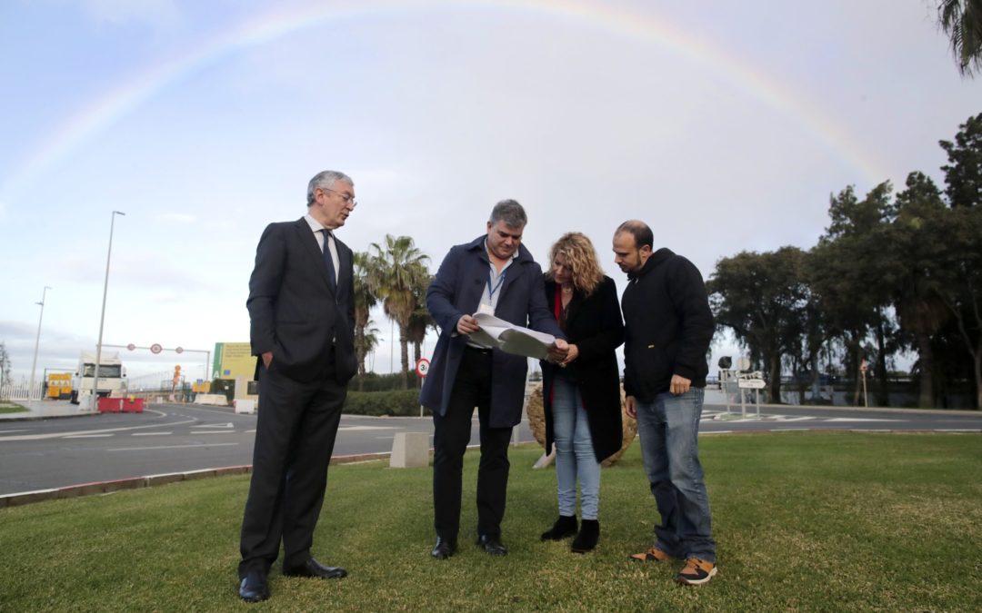 La presidenta del Puerto de Huelva ha realizado esta semana una visita al emplazamiento donde irá ubicado el mural en la que ha estado acompañada por el jefe del Área de Infraestructuras, Alfonso Peña, y el artista Manomatic.