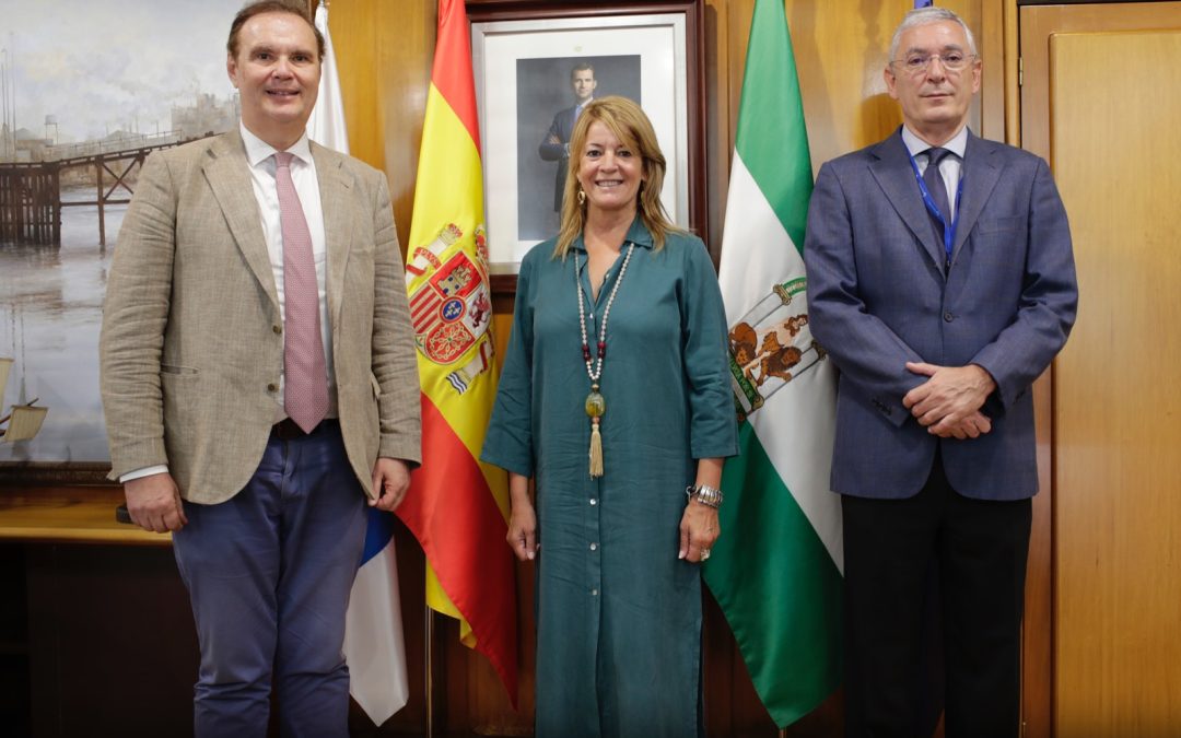 La presidenta del Puerto de Huelva, Pilar Miranda, ha recibido hoy al cónsul de Francia en Sevilla y vicepresidente de la Cámara de Comercio Franco-española, Christophe Sougey de Funes, para mantener un encuentro en el que han tratado temas de carácter institucional y también económico.