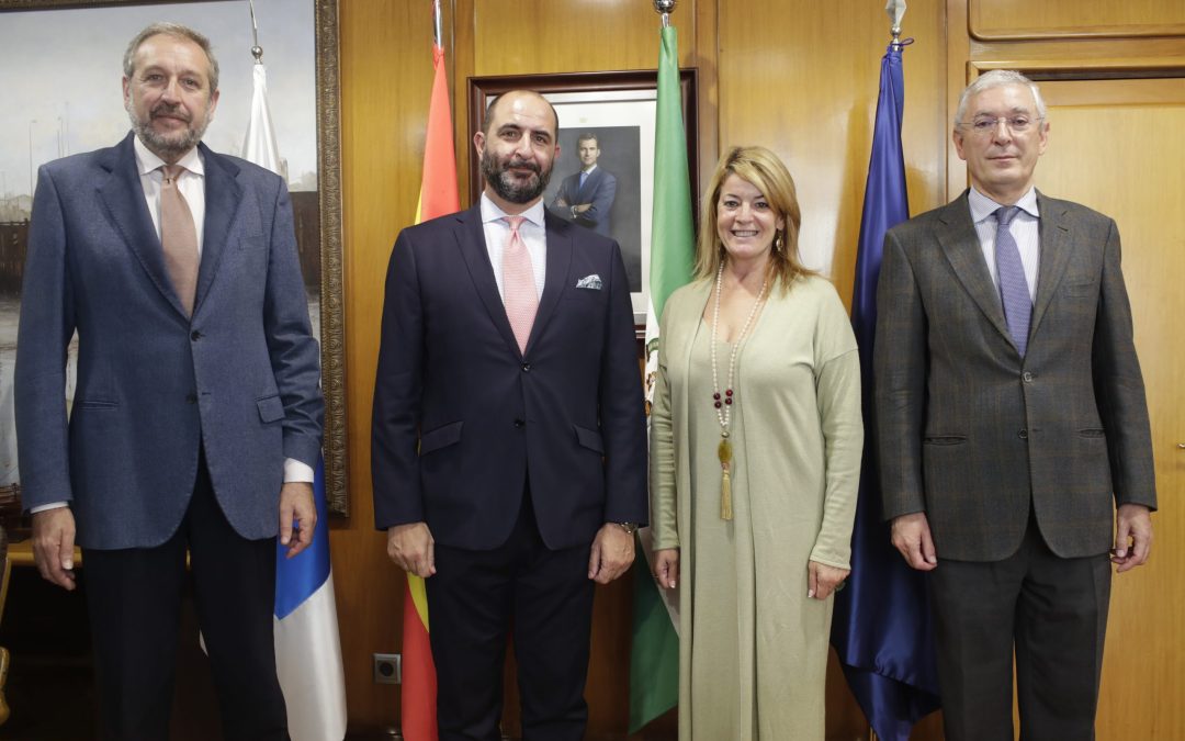 La presidenta del Puerto de Huelva, acompañada por el director del Puerto de Huelva, Ignacio Álvarez-Ossorio, y el secretario general del puerto, Javier Capitán, tras agradecerle la visita al cónsul, le ha dado a conocer los principales proyectos de crecimiento que está llevando a cabo el Puerto de Huelva para potenciar su competitividad como referente multimodal del suroeste europeo y nodo oficial del corredor Atlántico europeo, así como las actuaciones en el marco del ámbito puerto-ciudad.
