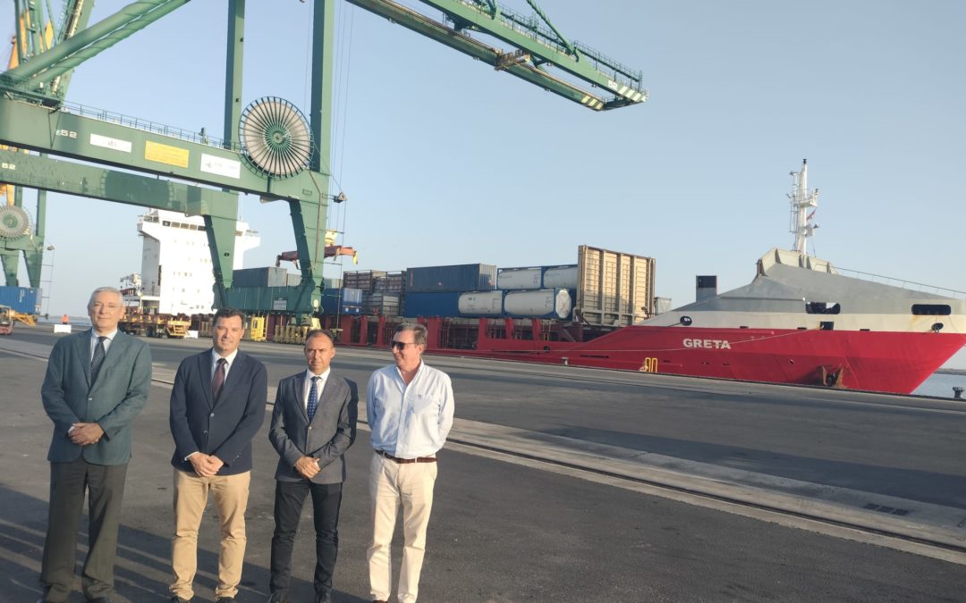 En el acto también han estado presentes el teniente alcalde de Palos de la Frontera, Ricardo Bogado, representantes de la naviera Maghreb Container International SL, así como distintas autoridades y empresas de la comunidad portuaria.