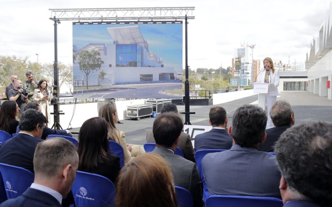 Huelva, 24 de marzo de 2023.- La Ciudad del Marisco del Puerto de Huelva, un edificio de 15.117 metros cuadrados dotados de 41 módulos destinados a la actividad de los exportadores de pescados y mariscos de la ciudad, además de ofrecer restaurantes y espacios de degustación, ha iniciado hoy su actividad en un acto, que ha contado con la presencia del presidente de la Junta de Andalucía, Juanma Moreno, la presidenta del Puerto de Huelva, Pilar Miranda, y el presidente de la Asociación de Exportadores de Pescados y Mariscos, Antonio Gómez.