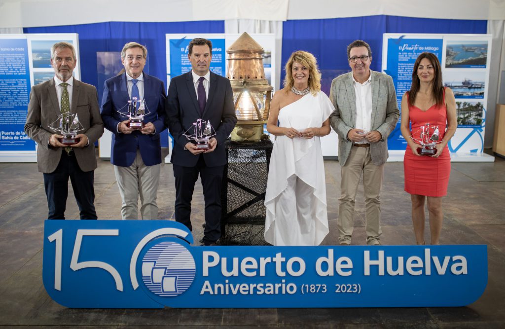 Huelva, 3 de agosto de 2023.- Los presidentes de las autoridades portuarias de Andalucía han visitado hoy junto con la alcaldesa de Huelva, Pilar Miranda, la exposición situada en la Caseta de Exposiciones de las Fiestas Colombinas dedicada a los puertos andaluces de interés general con motivo del 150 Aniversario del Puerto de Huelva. Para conmemorar la efeméride el Ayuntamiento de Huelva ha dedicado la presente edición a los siete puertos andaluces de interés general como son Algeciras, Almería, Cádiz, Huelva, Málaga, Motril y Sevilla como motores económicos de Andalucía.